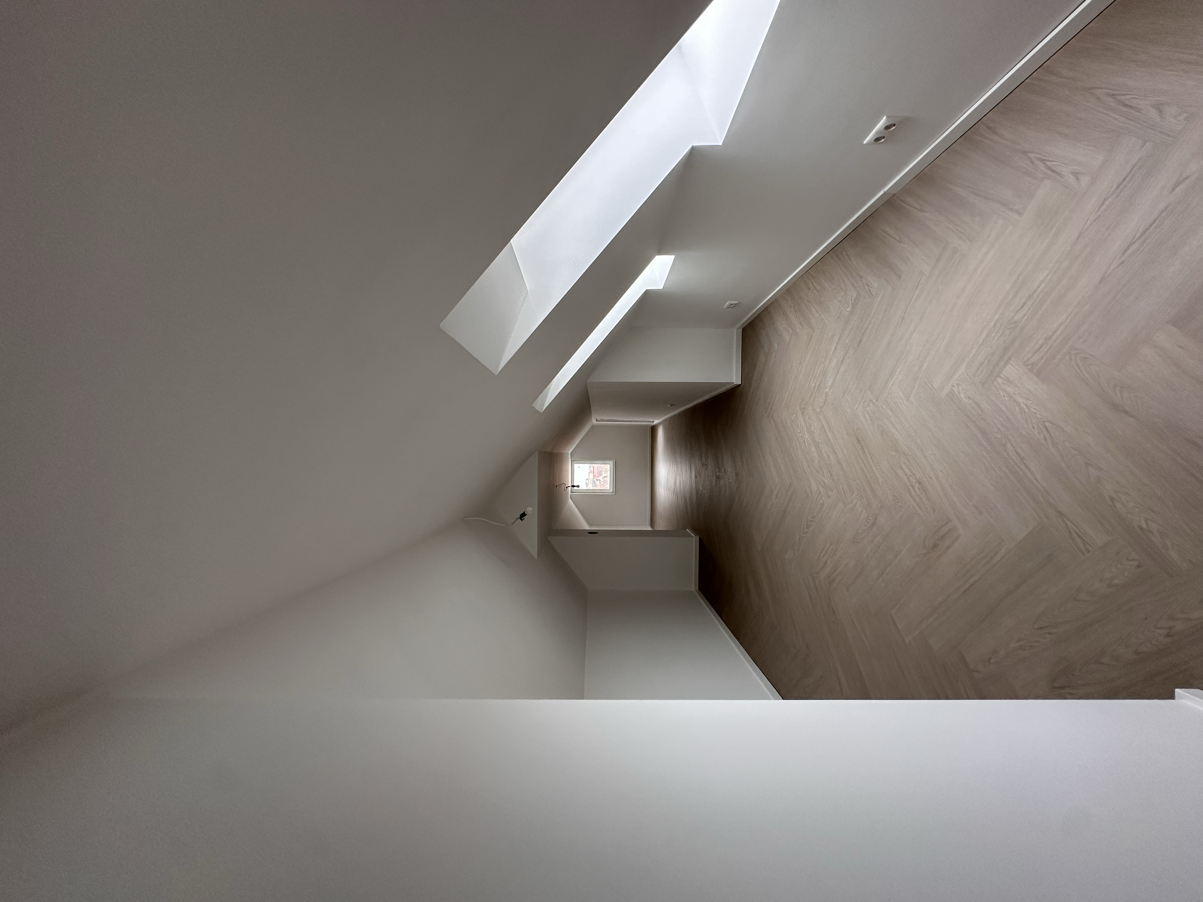 Über die Treppe gelangen Sie in den Dachspitz. Hier befindet sich der Schlafbereich mit ausreichend Platz für einen separaten Ankleidebereich. Ergänzt wird diese Ebene durch ein Tageslicht-Duschbad, das zusätzlichen Komfort und Privatsphäre bietet.