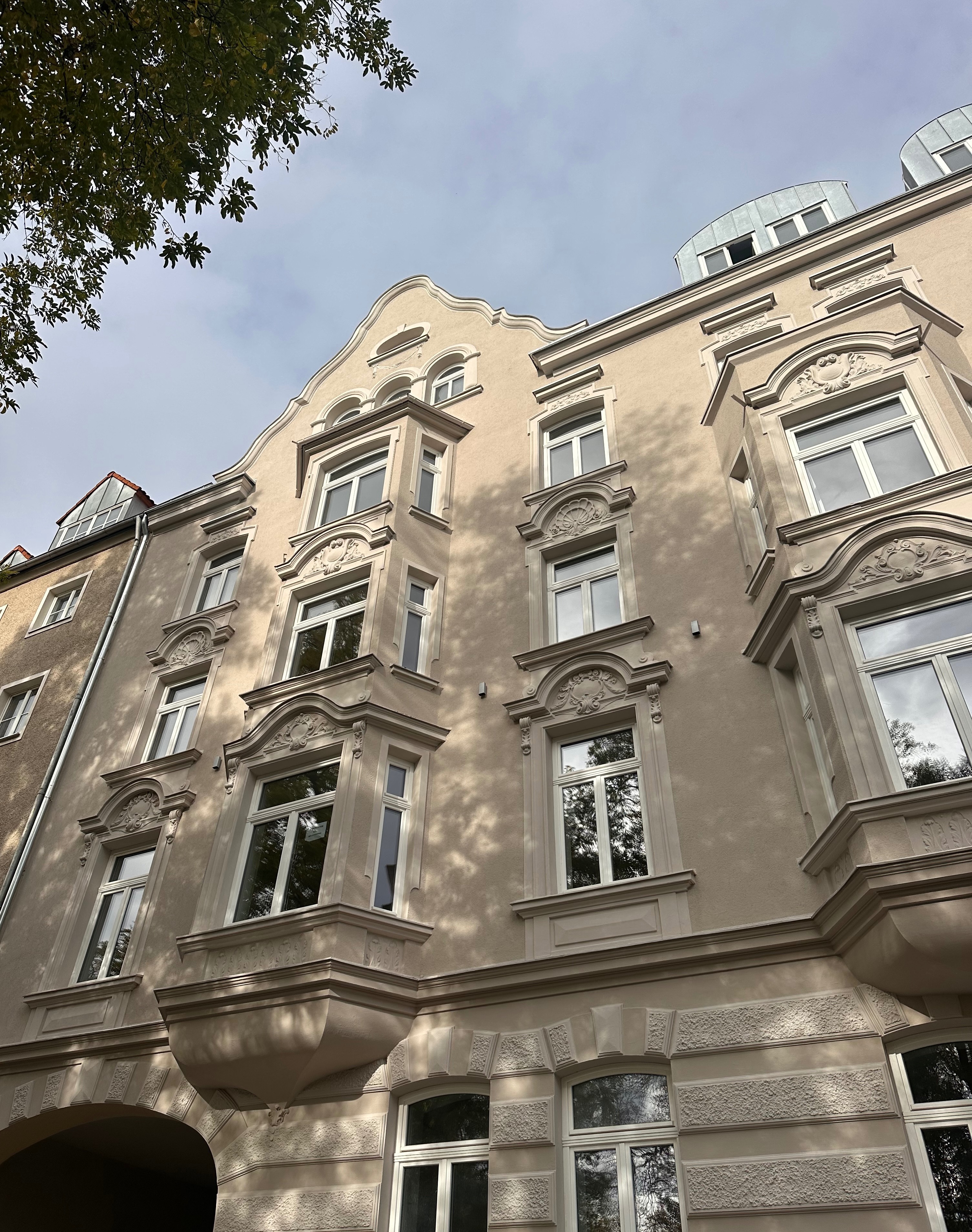 Die Wohnung liegt im 4. Obergeschoss eines repräsentativen Gebäudes aus dem Jahr 1918, das zwischen 2023 und 2025 mit hohem architektonischem Anspruch vollständig kernsaniert wurde. Es handelt sich um einen Erstbezug nach Kernsanierung direkt vom Bauträger.