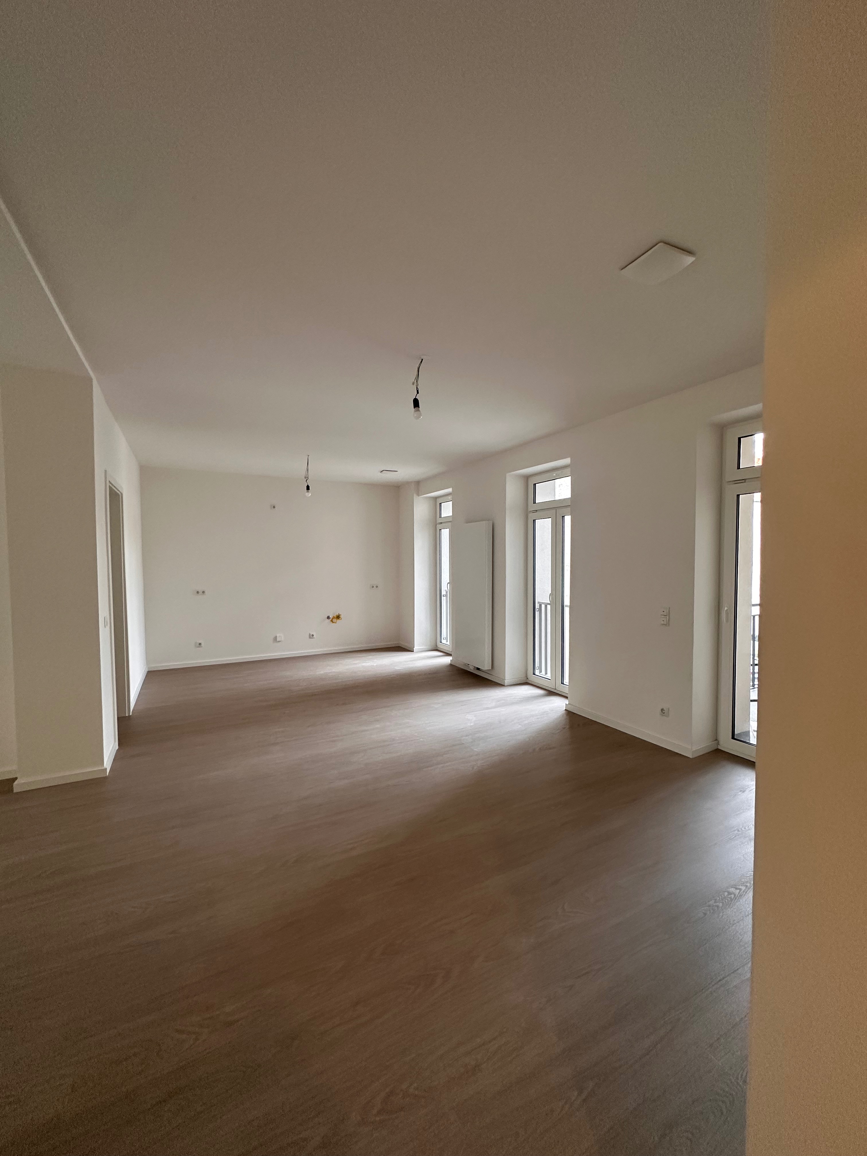 Der großzügige Wohn- und Essbereich bildet das Herzstück der Wohnung – ein einladender Ort für gemeinsames Wohnen und Genießen. Die Anschlüsse für eine offene Küche sind bereits vorbereitet, sodass hier eine moderne Einbauküche harmonisch in den Wohn- und Essbereich übergehen kann. Großzügige Fensterflächen sorgen für viel Tageslicht und unterstreichen das offene, freundliche Raumgefühl. Vom Wohnbereich gelangen Sie direkt auf den Balkon.