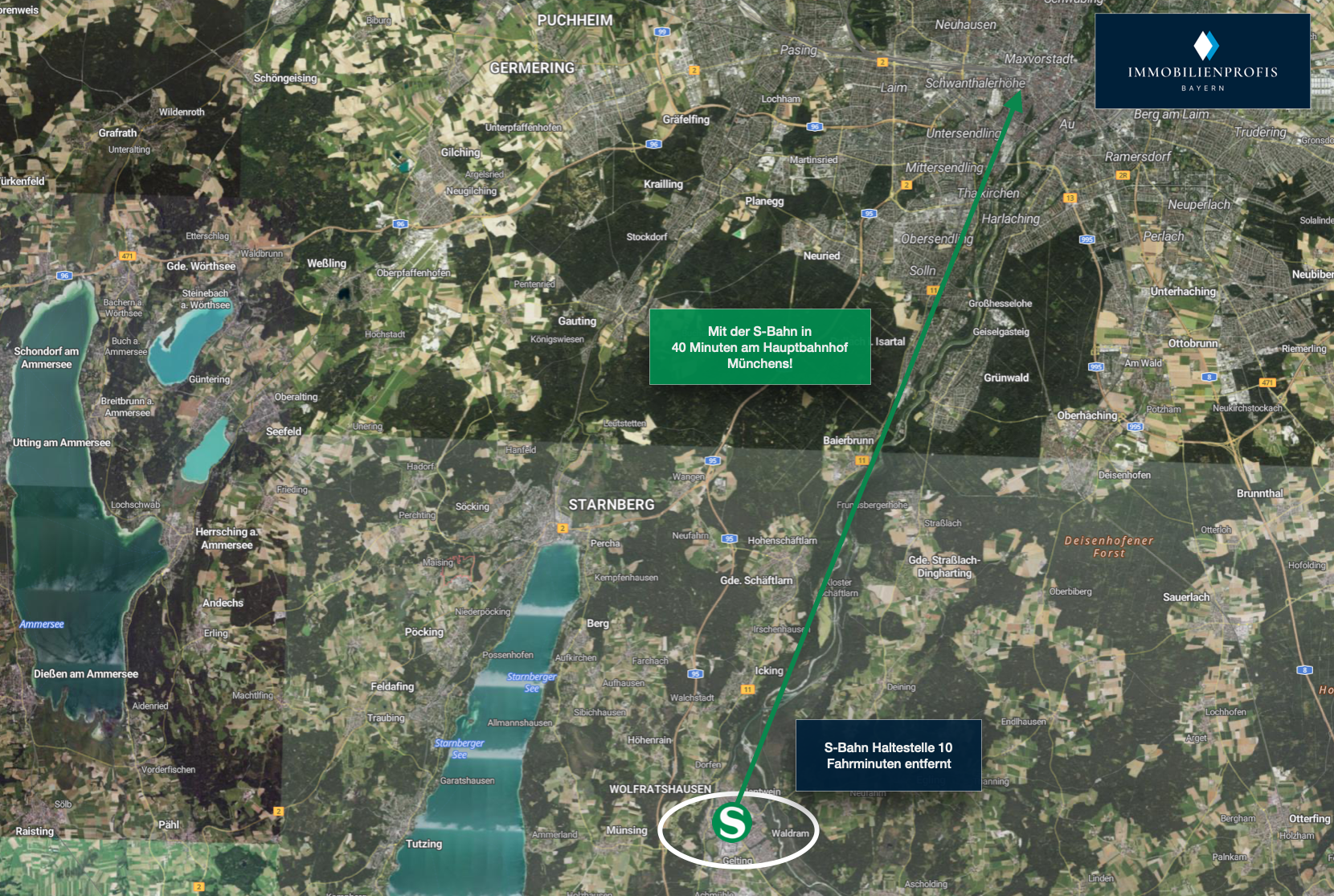 • ca. 10 Fahrminuten zur S-Bahn-Station Wolfratshausen – in ca. 40 Minuten direkt am Münchner Hauptbahnhof!