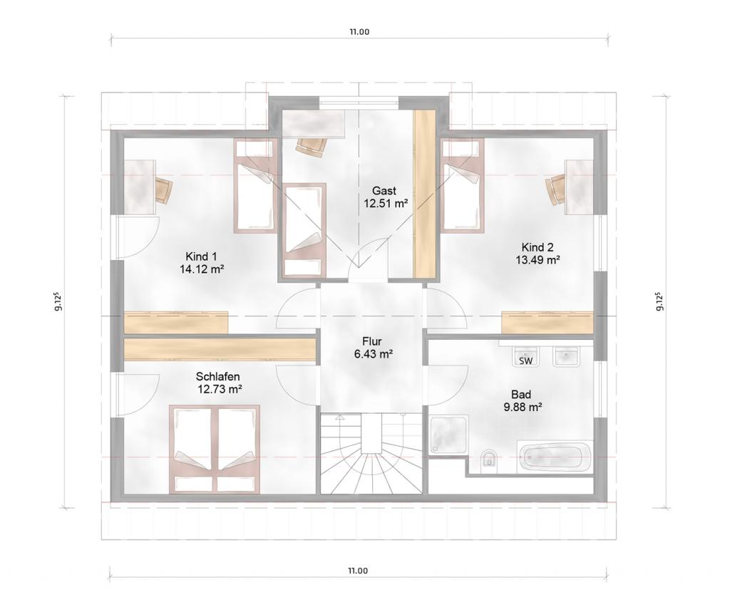 Klassische Architektur gepaart mit modernen Stilelementen lässt Ihr neues Traumhaus zum Hingucker werden. Die funktionellen Grundrisse im Erd- und Dachgeschoss runden dabei das Gesamtpaket auf 127 m² Wohnfläche ab. Dabei können die Grundrisse noch variabel an Ihre Wünsche und Bedürfnisse angepasst werden. Ob vier oder fünf Zimmervariante, klassische Grundrissvariationen oder modernes offenes Wohnen.